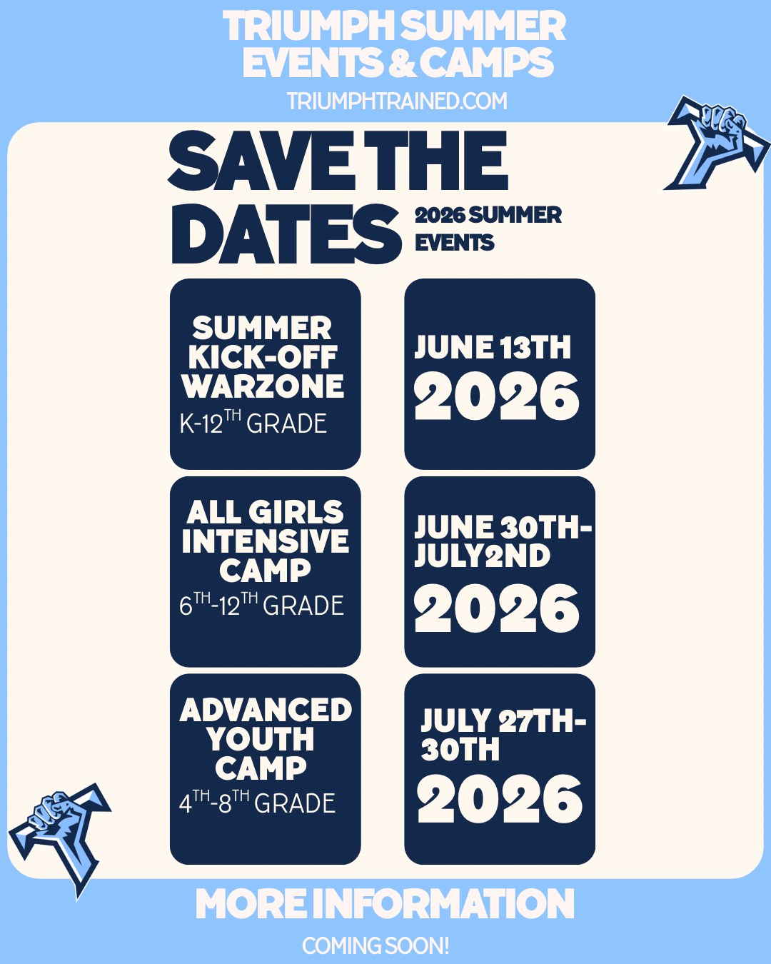 Save these dates for our 2026 events.